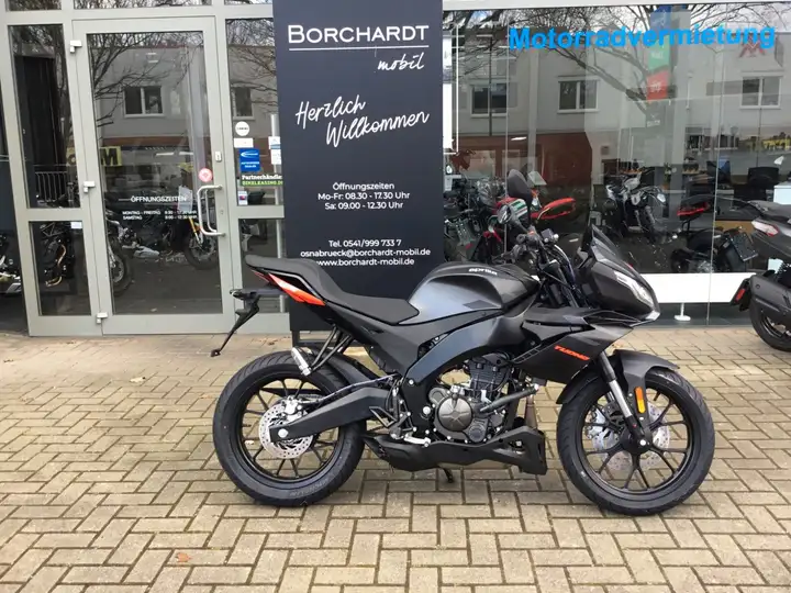 - Vielseitigkeit und große Reichweite Die Aprilia Tuono 125 bietet den viel Reichweite in ihrer Klasse dank 14,5 Liter Tank sowie ein geräumiges Staufach unter der Sitzbank, das Platz für beispielsweise ein Tablet bietet. Dieses kann bei Bedarf über die als Option erhältliche USB-Ladebuchse aufgeladen werden.