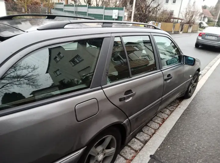 Die vordere Stoßstange ist leider lädiert (siehe Foto) und hinten hat der Benz zwei kleinere Blechschäden.