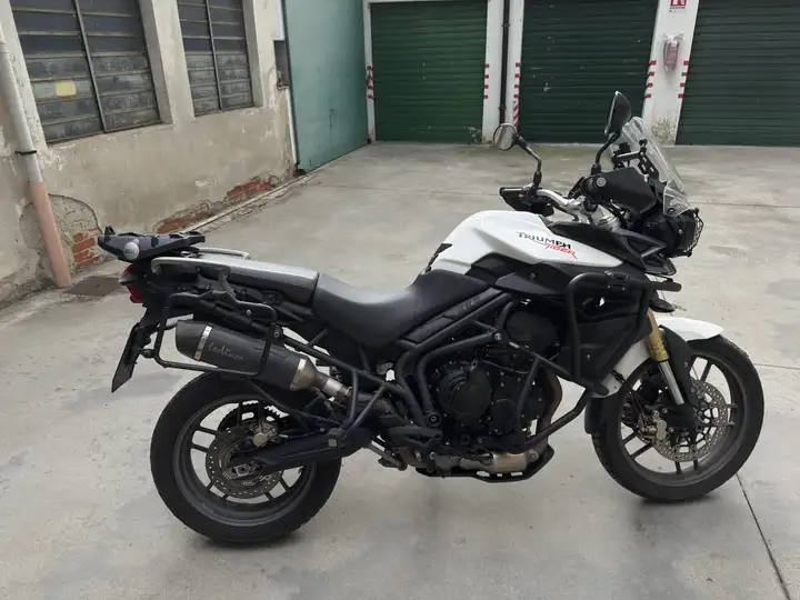 Vendo Triumph Tiger 800 anno 2012 con 69.000km. Perfettamente funzionante, manutenzione sempre meticolosa, appena tagliandata e sostituito trasmissione completa (catena, corona, pignone). Gomme 70%. La moto monta scarico Leo Vince e mono regolabile ma ho scarico e mono originali + cavalletto centrale.